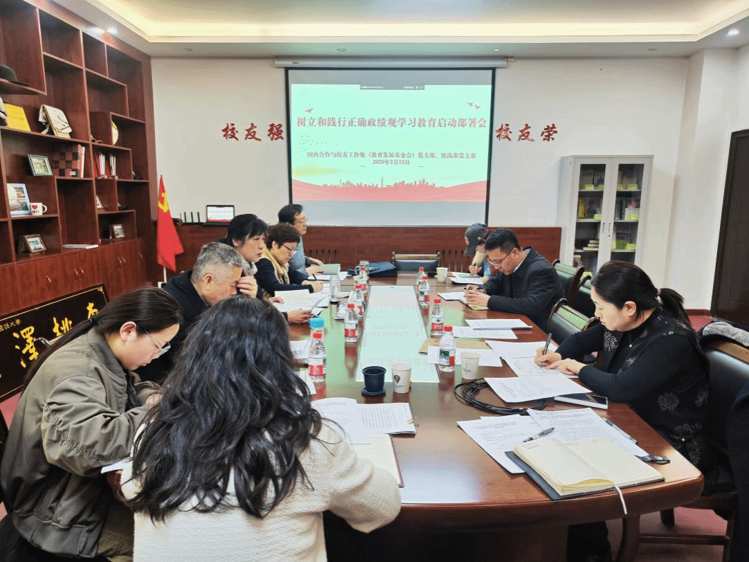 为深入贯彻落实学校树立和践行正确政绩观学习教育动员部署会精神,3月13日下午,国内合作与校友工作处(教育发展基金会)党支部在校务楼A401会议室召开树立和践行正确政绩观学习教育启动部署会,支部全体党员参加会议,会议由杜兵主持。